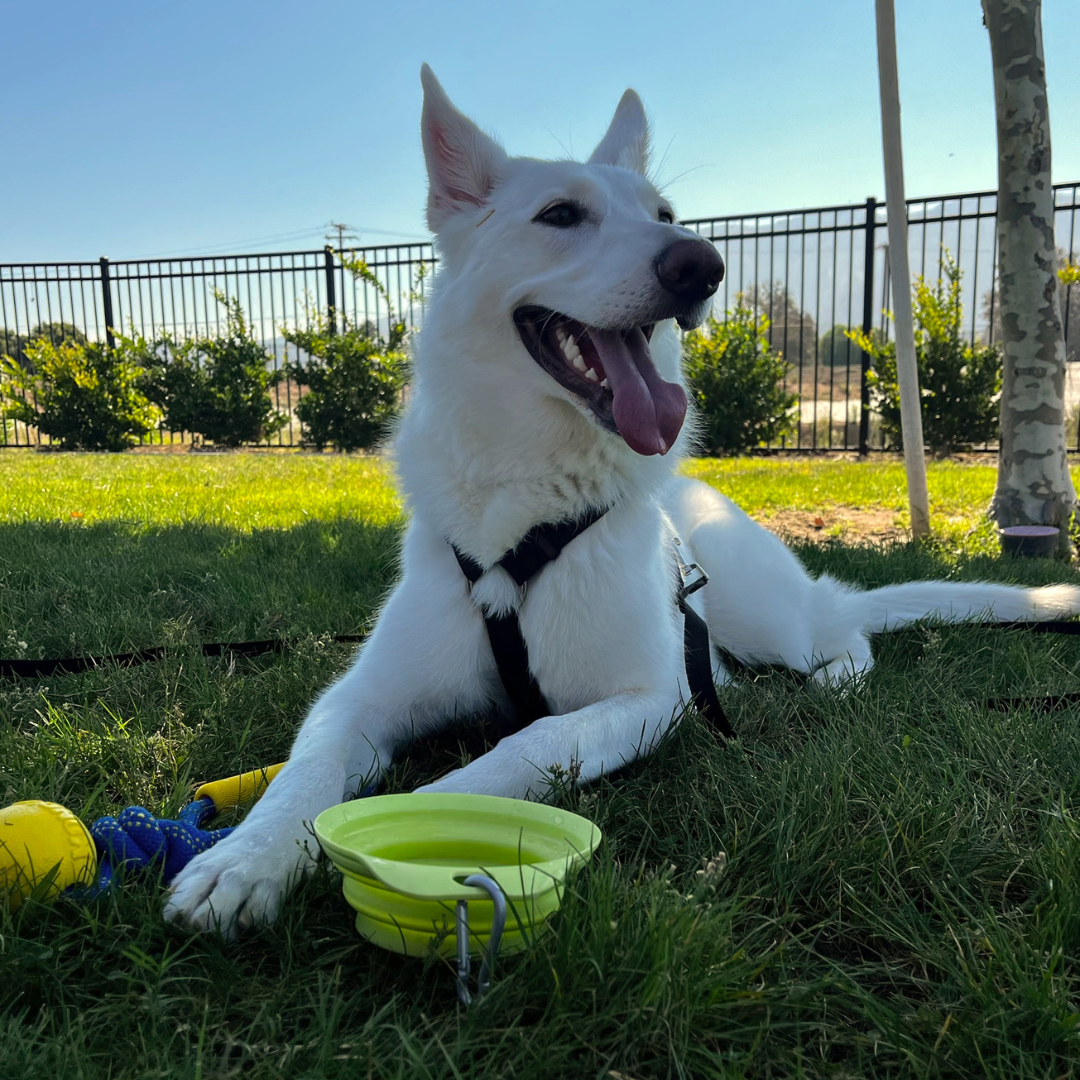 This is Nami (3). She is a white GSD who struggles with reactivity and is super nervy (we're always working on that). When she’s not barking at every thing that passes by the front door, she loves to fetch, tug, chase the cats, and lounge on the couch after a good exercise session. Nami is the sweetest dog to everyone she meets once she gets past her nerves.